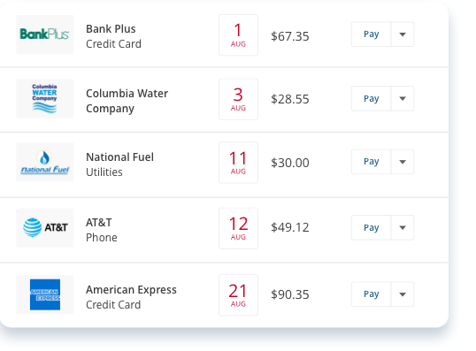 Automatically download amounts & due dates across all billers. Get a complete picture of bills and upcoming payments in one dashboard.