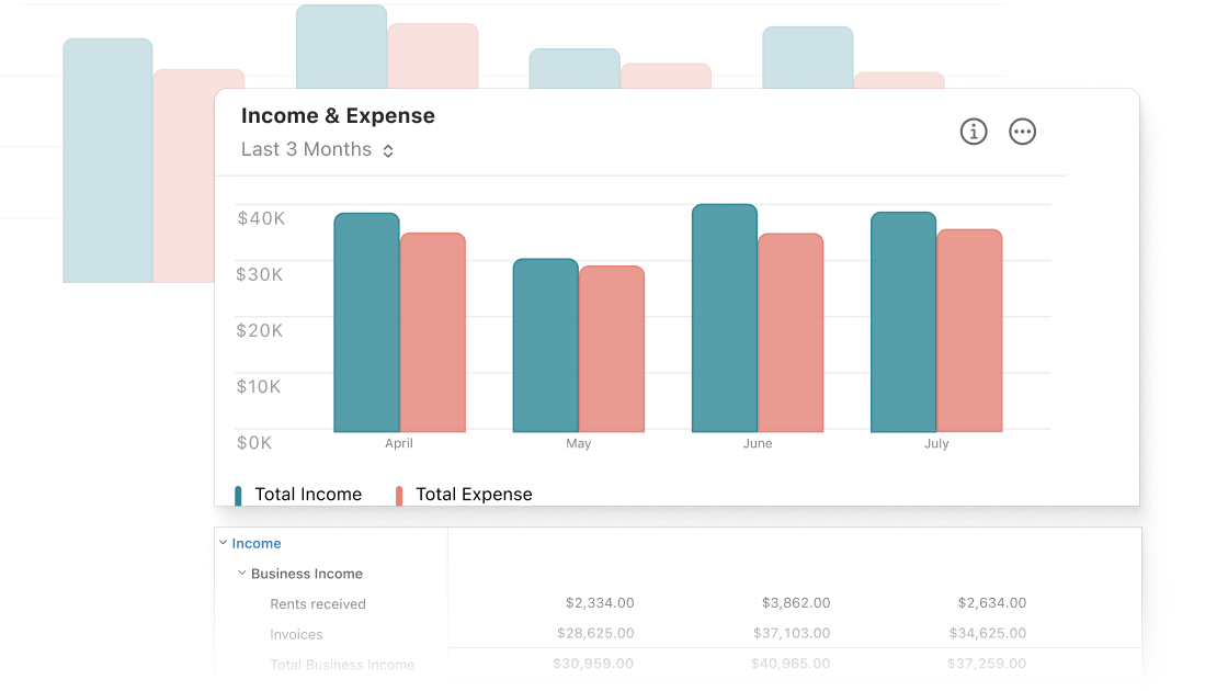 Get a birds-eye view of your finances with fully customizable reports and dashboards. Track expenses, invoices, savings, and so much more.