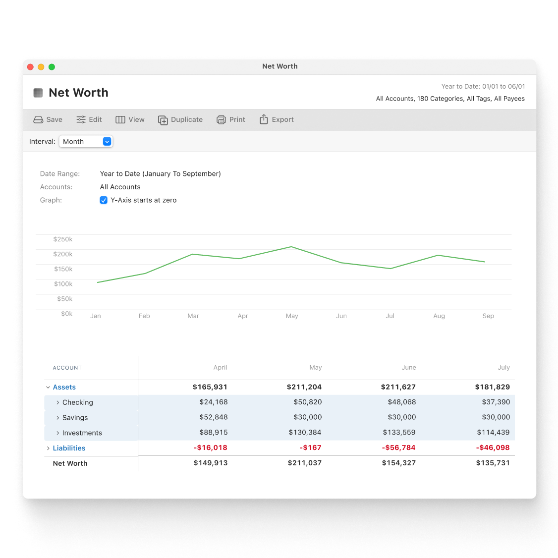 With data from your connected accounts, Zillow integration for your home, and manual add for any other asset or liability, Quicken Classic gives you a complete picture of your net worth that you can track over time.